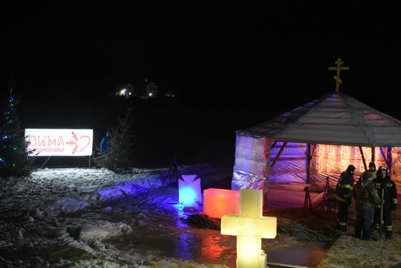 Водосвятный молебен и освящение купели состоялось в 23:30, ровно в полночь – долгожданное погружение в воду. Чтобы оно было наиболее комфортным, рядом с купелью оборудованы отапливаемые раздевалки.