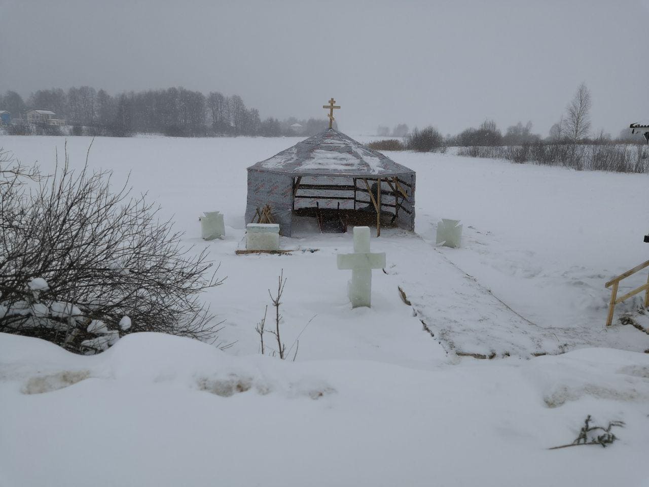 Купание было организовано на хорошем уровне. Для прихожан был смонтирован деревянный настил и раздевалки, бригада медиков и сотрудники полиции дежурили  рядом с купелью.